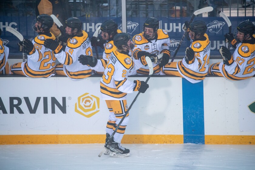 Warroad’s early offense overwhelms Roseau in Hockey Day Minnesota